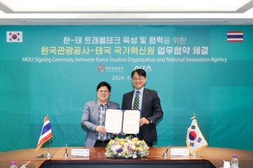 한국관광공사(사장직무대행 서영충, 이하 공사)는 태국 국가혁신원과 4일 공사 서울센터에서 한-태 트래블테크 육성 및 협력을 위한 업무협약을 체결했다.