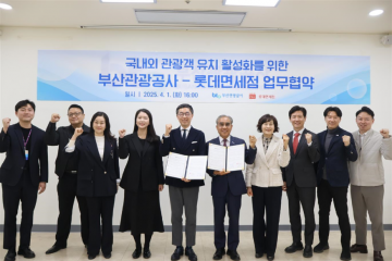부산관광공사(사장 이정실)와 롯데면세점(대표이사 김동하)은 국내외관광객 유치활성화를 위한 업무협약을 체결했다. 이번 협약을 통해 부산 방문국내외 관광객의 소비 촉진 및 부산 관광산업 활성화에 기여할 것으로 기대된다.