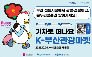 부산광역시(이하 부산시)와 부산관광공사(이하 공사)는 한국철도공사 부산경남본부(이하 철도공사)와 협력하여 철도 이용과 전통시장 소비를 연계한 **‘K-부산관광마켓 상품’**을 오는 10월 20일부터 선보입니다.