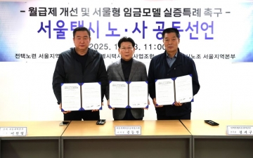 이번 공동선언에는 서울택시조합 김동완 이사장, 전택노련 서울본부 이원형 의장, 전국 민주택시 노동조합 서울본부 정지구 본부장이 참석했다.