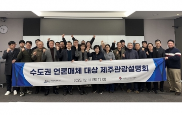 제주특별자치도와 제주특별자치도관광협회(회장 강동훈)는 지난 11일 서울 광화문 HJ비즈니스센터에서 수도권 관광전문기자 30여 명을 초청해 ‘제주관광 설명회’를 열고 2025년 관광객 유치 성과와 2026년 추진 방향을 발표했다.