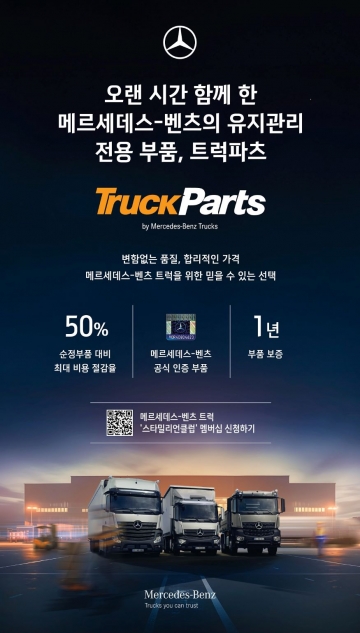 ‘트럭파츠’는 메르세데스-벤츠 트럭의 생산 및 품질 기준을 기반으로 한 부품을 보다 합리적인 가격에 제공하는 공식 프로그램으로, 차량 연식이 오래된 경우에도 경제성과 유지보수 효율을 동시에 확보할 수 있도록 설계됐다.
