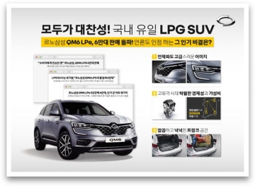 르노삼성자동차 QM6 LPe는 국내 유일의 LPG SUV로서 편안하고 실용적인 공간 활용성과 뛰어난 경제성으로 큰 인기를 얻고 있다. 이러한 인기에 힘입어 출시 2년여 만에 LPG 차량 누적 출고 대수 6만대를 달성했다.