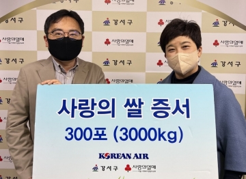 대한항공이 기증한 쌀은 강서구가 선정한 독거 노인, 소년소녀 가장, 장애인 등 취약계층 300가구에 전달할 예정이다.
