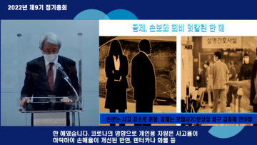 한편, 이날 총회는 코로나바이러스감염증-19(이하 코로나19) 예방을 위하여 철저한 방역 및 방역수칙 준수 하에 최소한의 조합원 참석으로 개최되었고, zoom을 통한 온라인 참여와 공제조합의 소통 채널인