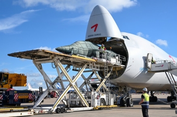 영국 국제에어쇼에 참가하는 공군 블랙이글스의 T-50B 항공기 화물기로 운송
