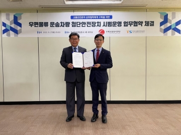 한국교통안전공단(이사장 권용복)은 지난 9월 27일(화) 우체국물류지원단(이사장 변주용)과 “우편물류 운송차량 첨단안전장치 시범운영 및 교통안전분야 상호 협력체계 구축을 위한 업무협약을 체결하였다.“고 밝혔다.